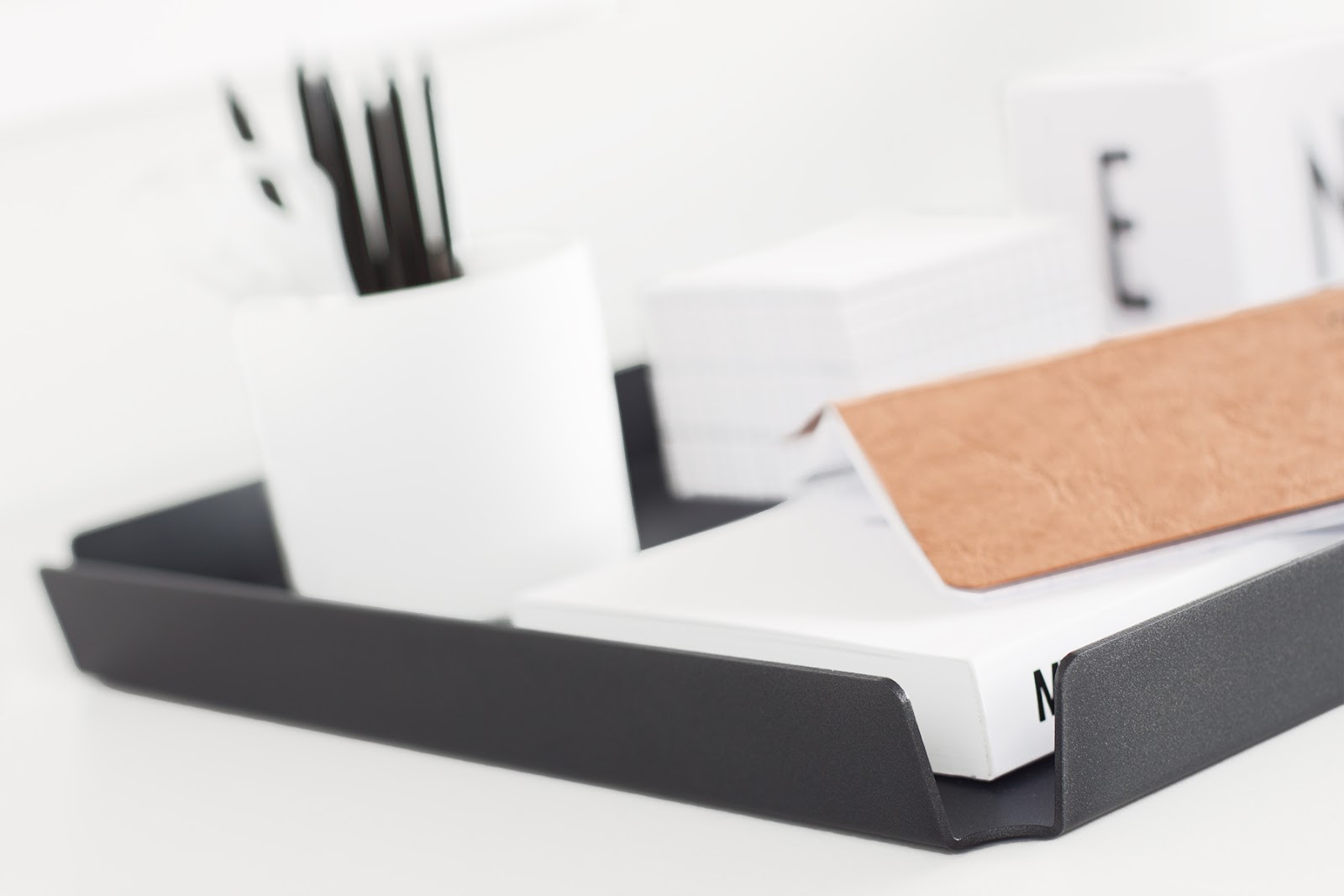 [Werbung für Connox] Wenn ich am Arbeitsplatz etwas nicht leiden kann, dann: das Fehlen von Ordnung. Entgegen der psychologischen Mehrheitsmeinung haben Papierhaufen, Kabel und umherfliegende Stifte für mich nichts mit Genialität oder Kreativität zu tun, sie sind einfach nur lästig. Und sie stören die synaptische Aktivität in meinem Kopf derart, dass an konstruktives Arbeiten nicht zu denken ist.